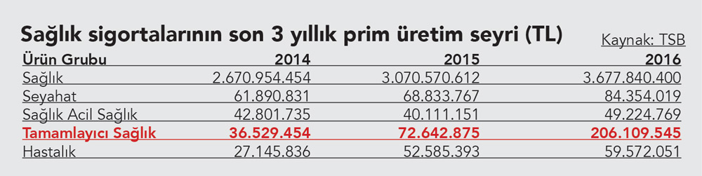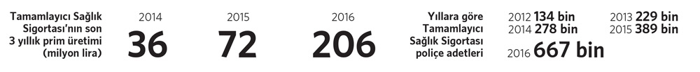 “2014 sonu itibarıyla sağlık branşında üretilen her 100 liralık primin 1.2 lirası tamamlayıcı sağlıktan geliyordu. 2016 sonunda bu miktar 4.88 liraya yükseldi.”